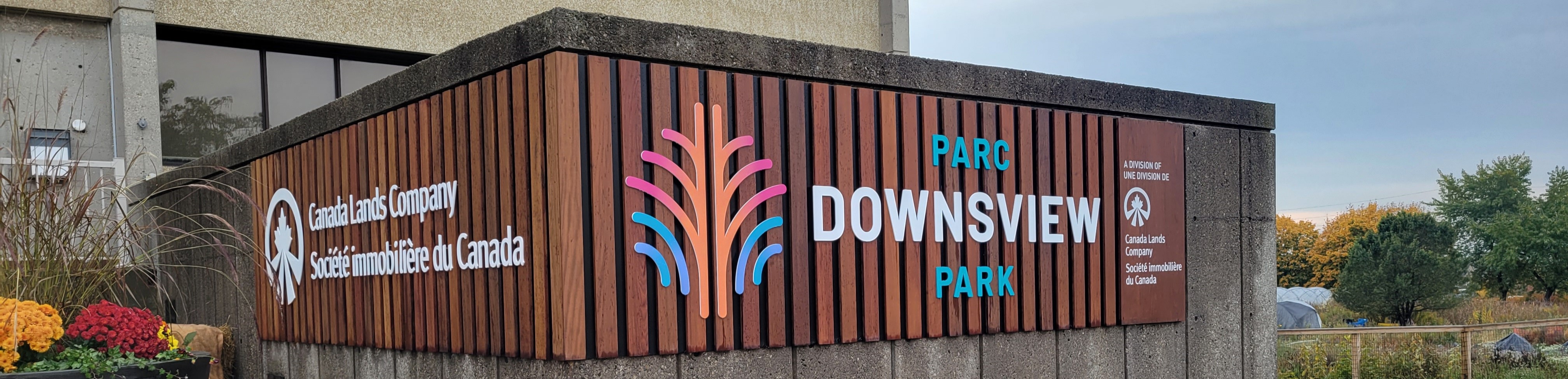 4) Le carrefour se trouve à l'intérieur du 70, avenue Canuck. Prenez une photo avec le panneau Parc Downsview à l'extérieur du bâtiment du 70, avenue Canuck.